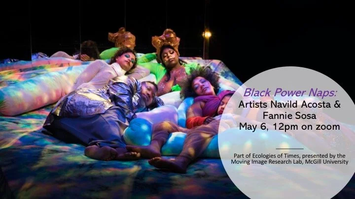 A public talk and q&a with artists Navild Acosta and Fannie Sosa about their collaborative project "Black Power Naps." "Black Power Naps is a sculptural installation, vibrational device and curatorial initiative that reclaims laziness and idleness as power. Departing from historical records that show that deliberate fragmentation of restorative sleep patterns were used to subjugate and extract labor from enslaved people, we have realised that this extraction has not stopped, it has only morphed. A state of constant fatigue is still used to break our will. This “sleep gap” shows that there are front lines in our bedrooms as well as the streets: deficit of sleep and lack of free time for some is the building block of the “free world”. After learning who benefits most from restful sleep and down time, we are creating interactive surfaces for a playful approach to investigate and practice deliberate energetic repair. As Afro Latinx artists, we believe that reparation must come from the institution under many shapes, one of them being the redistribution of rest, relaxation, and down times."